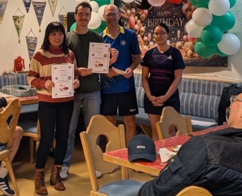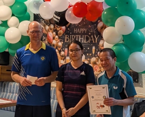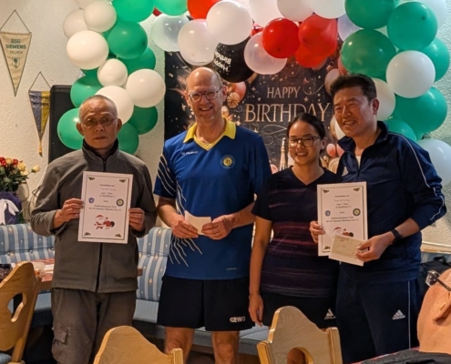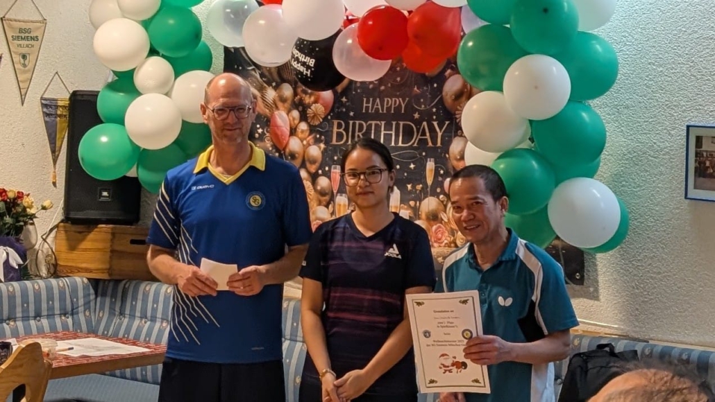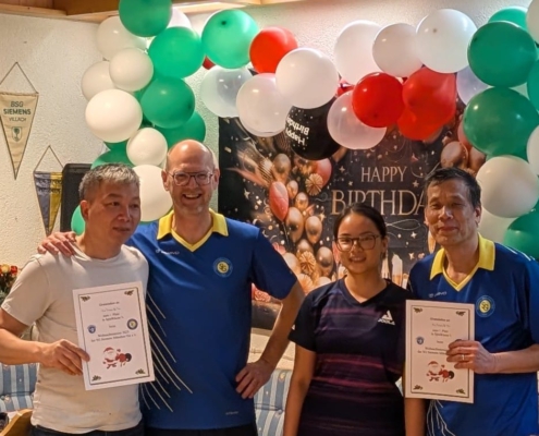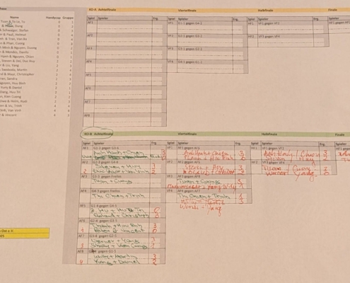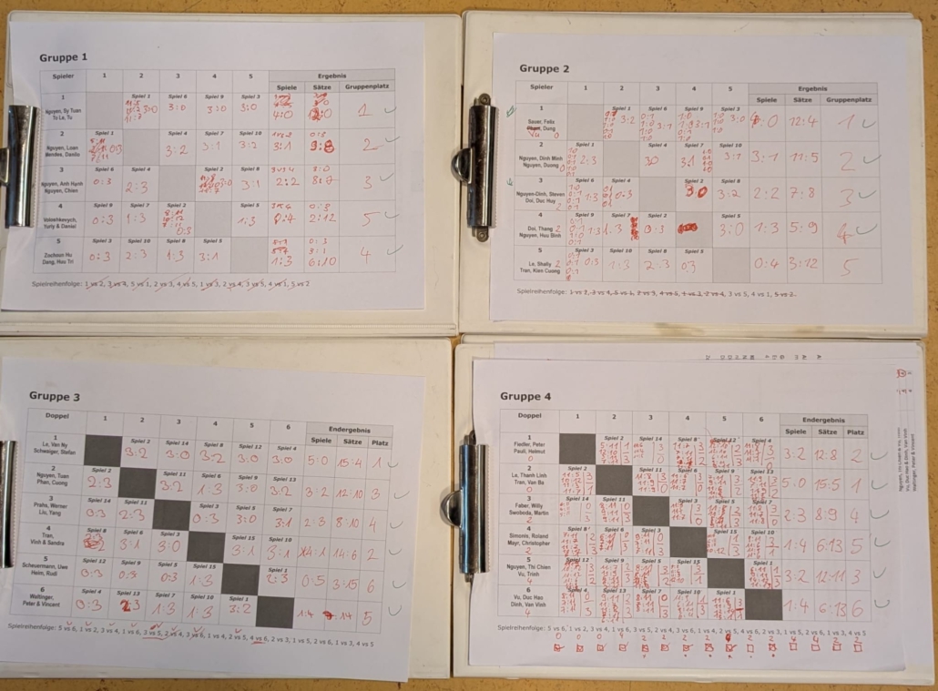Am Wochenende 23/24.04.2022 trug unsere vietnamesische Gruppe „Grüne Steinplatte“ ihre interne Meisterschaft aus. In diesem Rahmen lud sie am Sonntag die anderen Mitglieder zu einem Freundschafts-Doppelturnier ein. 8 Doppel nahmen an dieser sehr schön organisierten Veranstaltung teil, 4 vietnamesische und 4 aus dem Rest der Welt. Gespielt wurde in 2 Gruppen und die besten 4 Doppel zogen ins Halbfinale ein. Das Endergebnis: