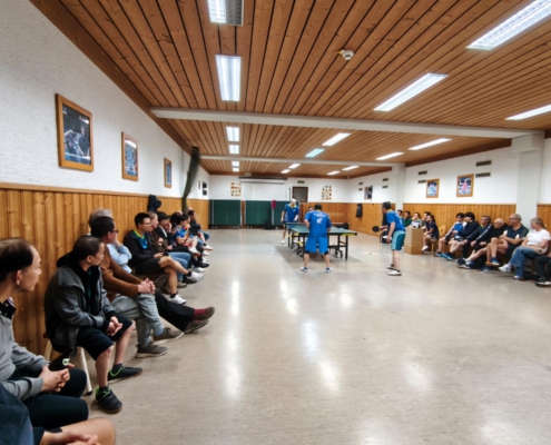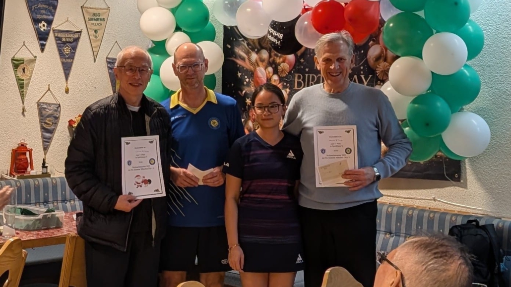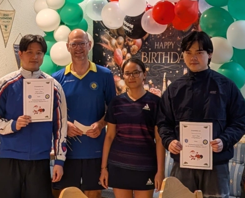 Zum Weihnachtsturnier am 8.12.2023 meldeten sich 28 Teilnehmer an. Diese Anzahl passte sehr gut zu unserer Plattenkapazität. So konnten wir schon in der Gruppenphase auf 3 Gewinnsätze spielen.